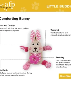| A perfect first toy for your new puppy, this Comforting Bunny is cute and bright and has lots of pieces for your puppy to chew on and nibble. |