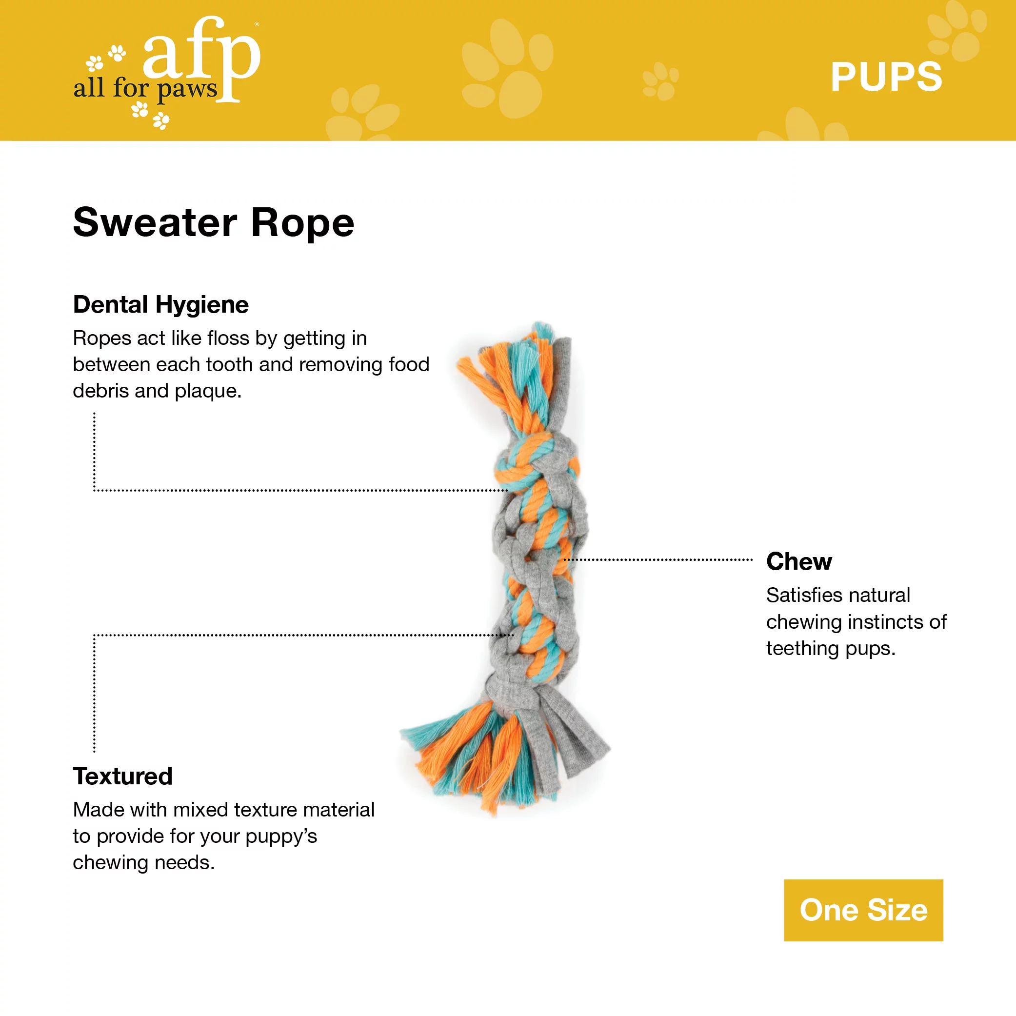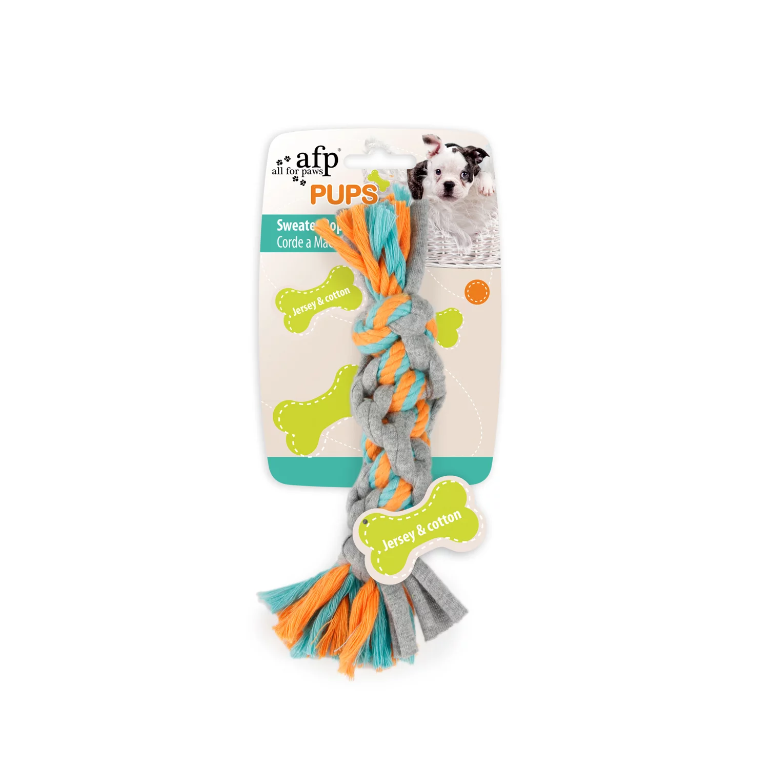 If you’re looking for a toy to keep your puppy busy and be soft and gentle on their little mouths, this is the toy for you. The Sweater Rope is made from jersey and cotton material and is the perfect toy for chewing and tugging games. |