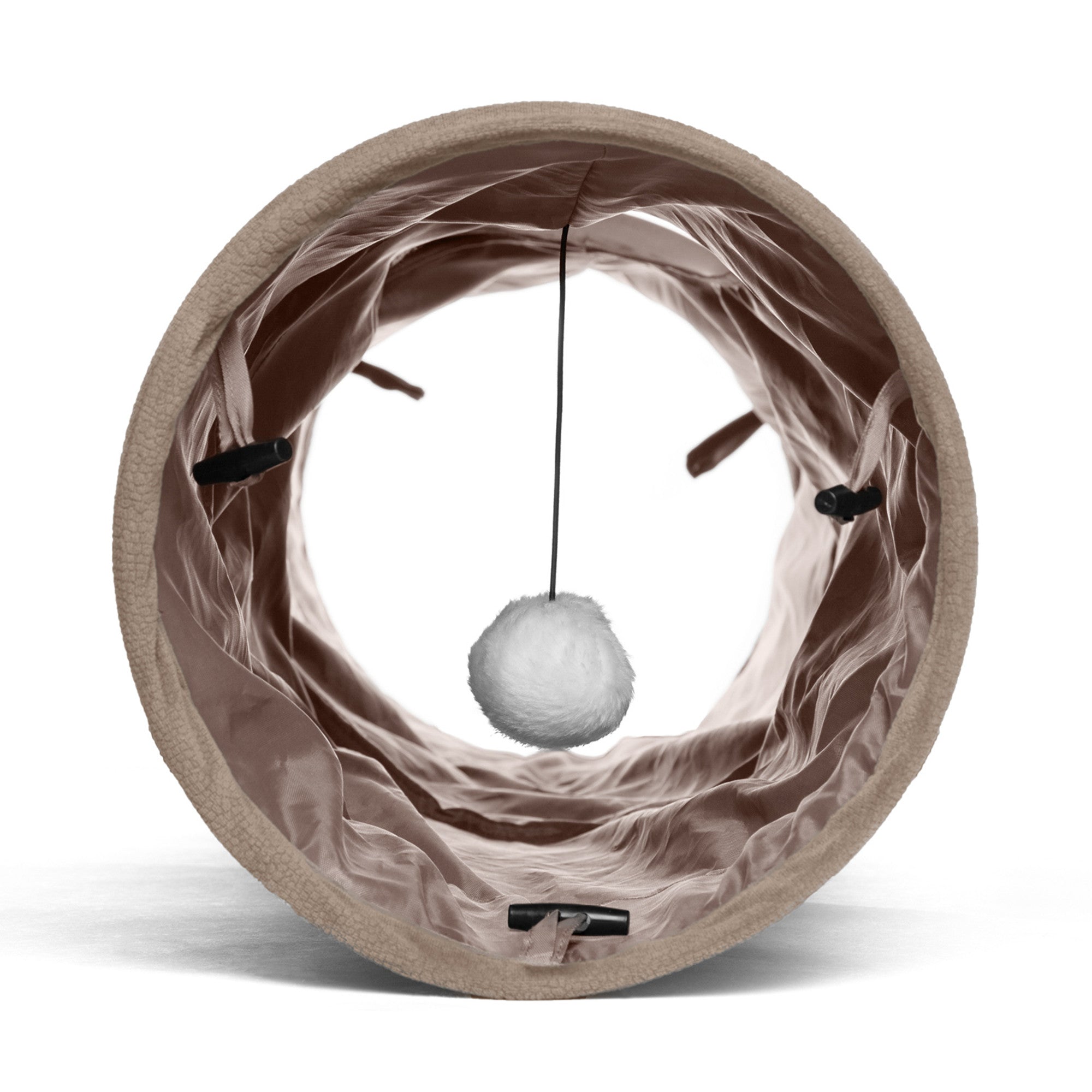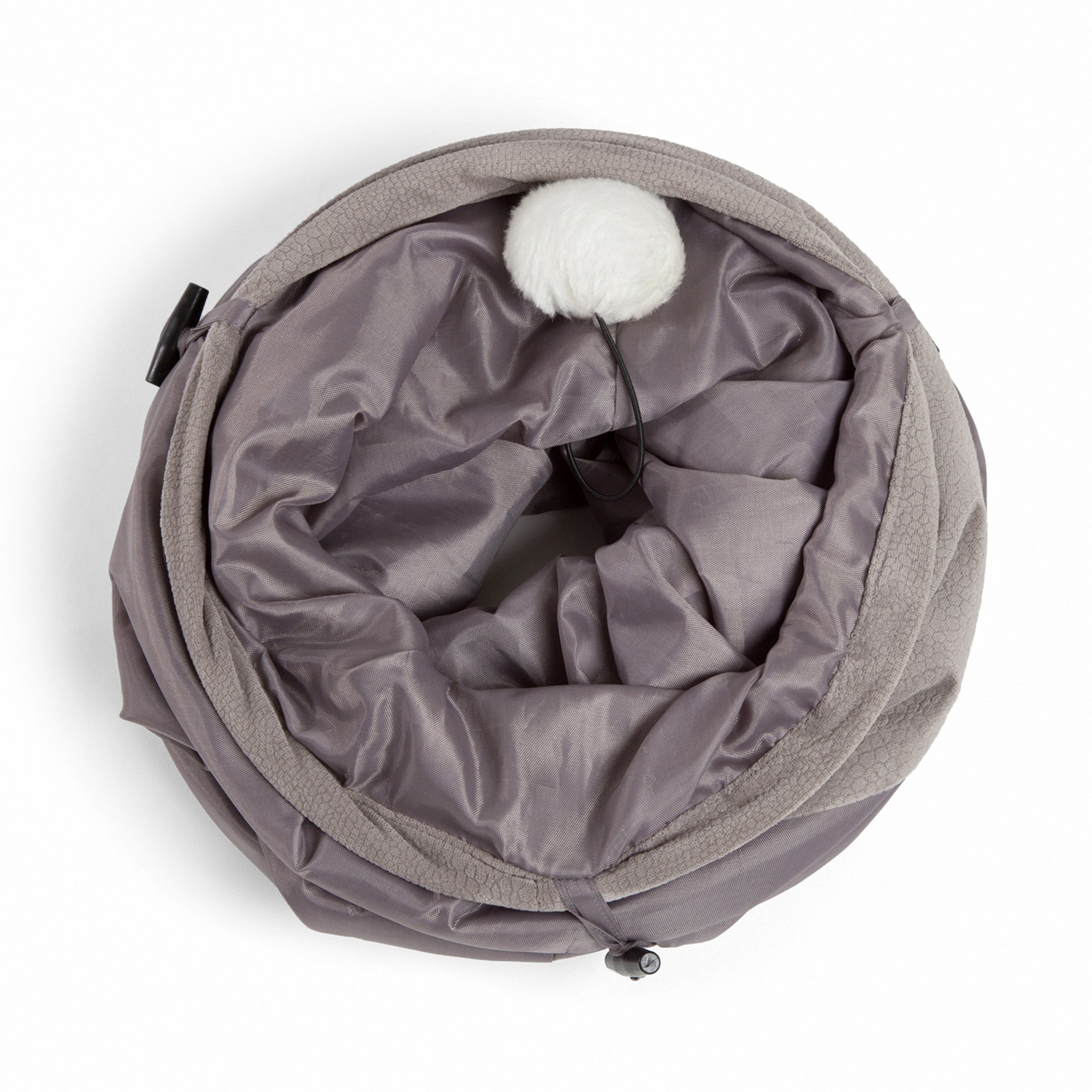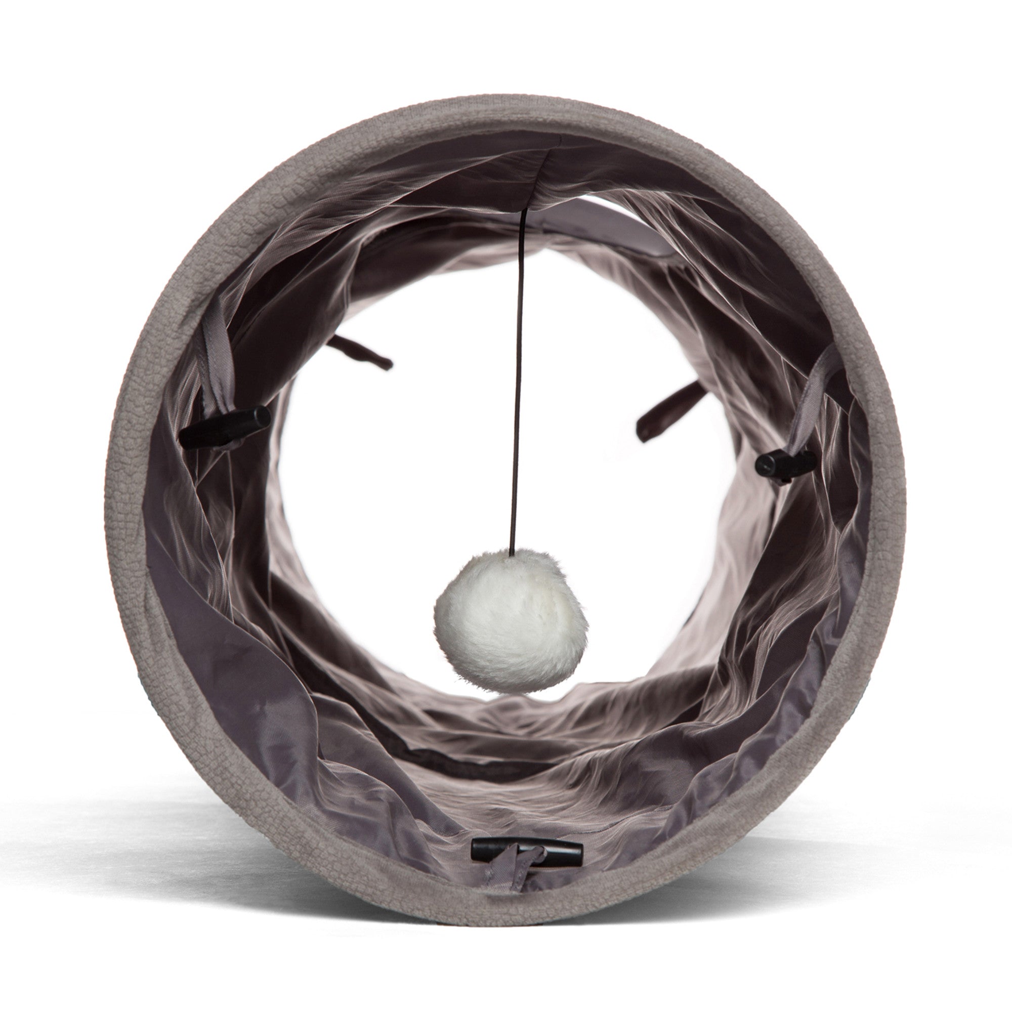 - Cat play tunnel: Your cat can go from snoozing to playing! The enclosed tunnel space includes a dangling ball toy for your cat to swat and bat.