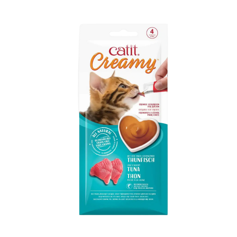 Introducing the Catit Creamy Cat Treats. These treats can be used to disguise the taste of medicine, hand-fed to help strengthen your bond, or used as a food topping to spice up mundane Monday night dinners.