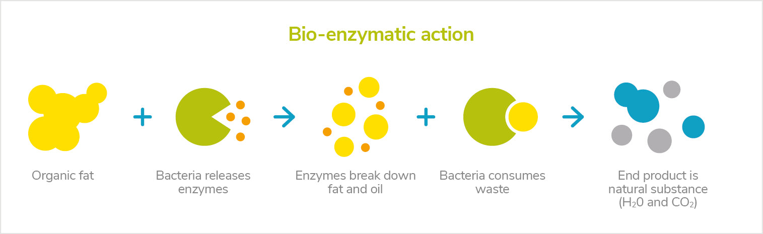 Cleaning the way nature intended, this advanced formula uses non-pathogenic bacteria to speed up the natural biodegradation process, by producing enzymes, which break down the odour causing organic particles and convert them to carbon dioxide and water.