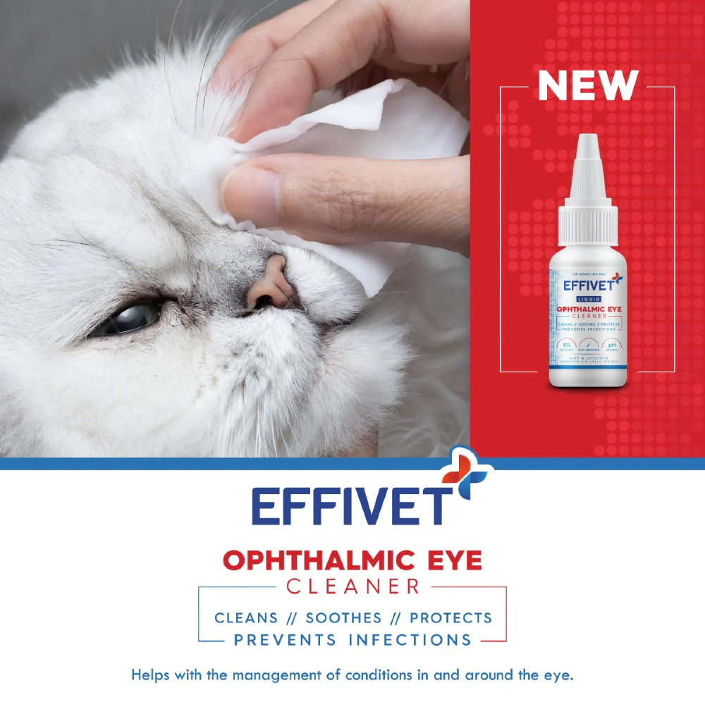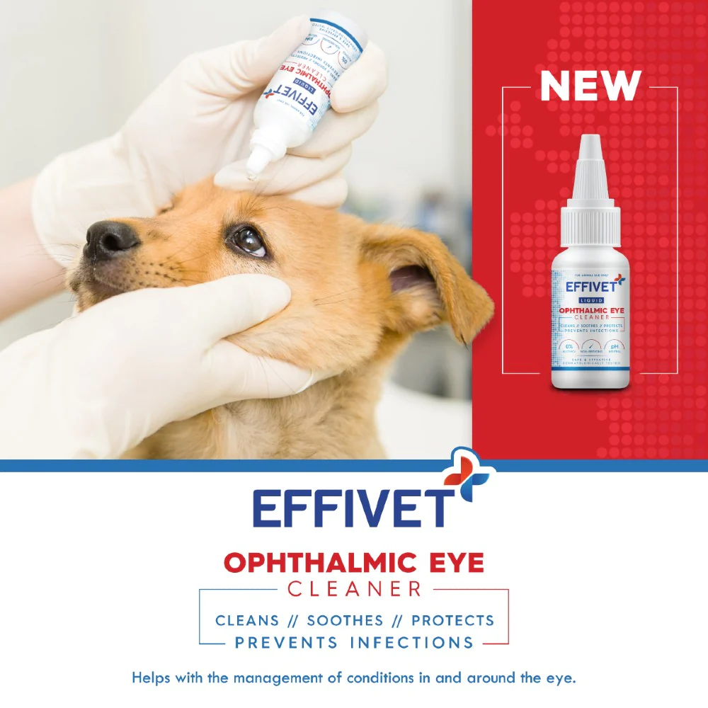 Effivet Ophthalmic Eye Cleaner is a clear, pH neutral, non-irritating and safe liquid indicated for the management of ocular and periocular conditions.