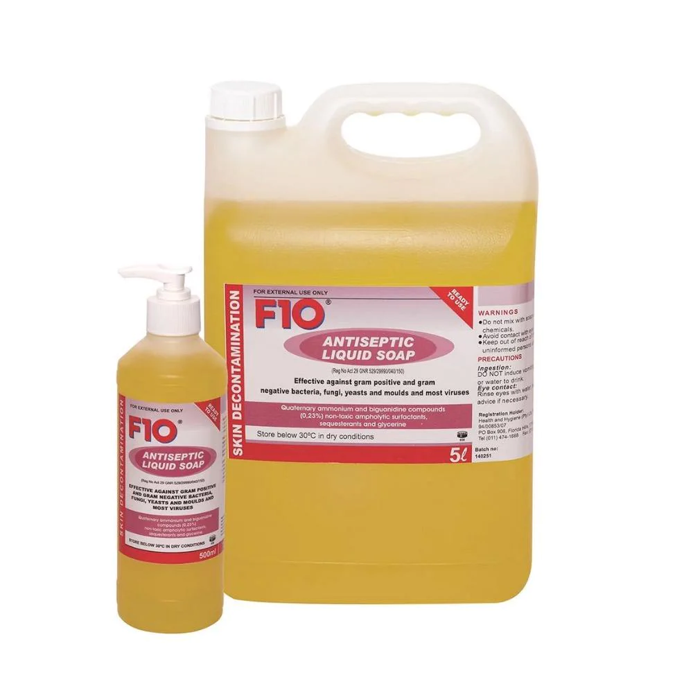 F10 Antiseptic Soap is a broad spectrum, general-purpose hygiene soap with rapid kill times of bacteria, viruses and fungi. It is non-irritant and contains emollients to prevent hands from drying out. Designed for frequent use. Contains glycerine and lanolin to counter skin drying experienced with frequent use.