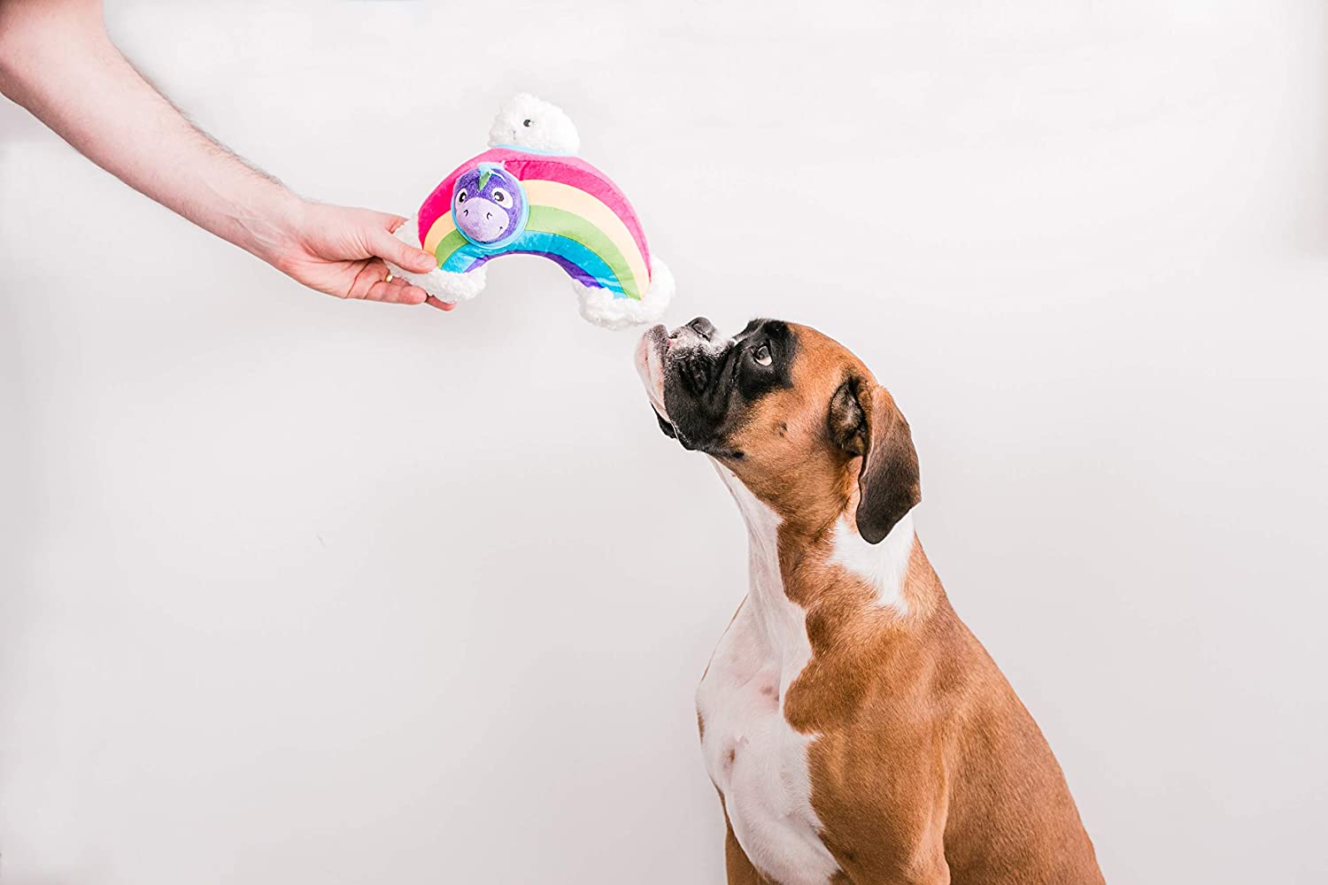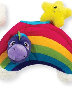 - Each hide-a-rainbow puzzle plush toy is stuffed a squeaking unicorn, star & cloud.