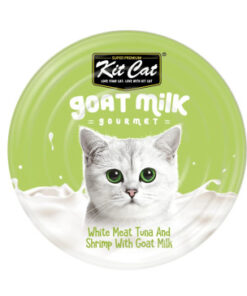 Kit Cat White Meat Tuna Flakes & Shrimp with Goat’s Milk 70g Cat Food was created by their nutritionists who are also cat lovers and made with the goodness of carefully selected natural ingredients which contain no added colours or preservatives. Our Kit Cat 100% grain-free diet offers your cat a pH level balance of wholesome nutrition to support a healthy lifestyle, reducing the risk of kidney stones and urinary tract infections.