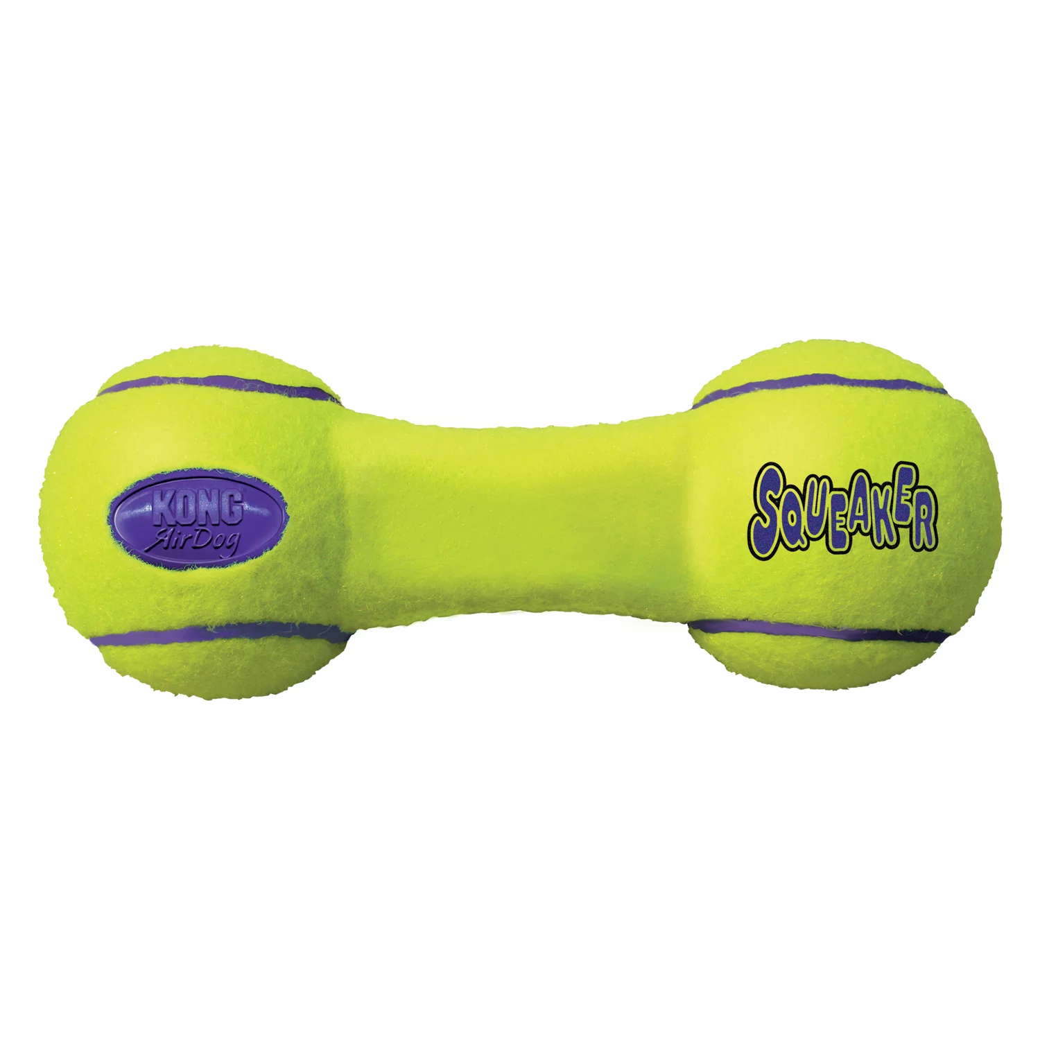 KONG AirDog combines two classic dog toys – Squeaker toys and tennis balls: two canine favourites brought together at last. Tailor-made for games of chase and fetch, this toy conceals an irresistible squeaker inside. The dumbbell shape has a silly, unpredictable bounce and it even floats for hours of retrieving fun (and training) by land or by sea. The Air KONG squeaker dumbbell is made in the USA from durable, high-quality tennis-ball material. Unlike typical tennis balls, however, the non-toxic felt covering on an Air Kong is specially designed not to wear down dogs’ teeth as they play. Caution: – Designed for light / moderate chewing. For tough chewing sessions, try KONG rubber toys. Supervised use only. Remove all packaging. Discontinue use if damaged. |