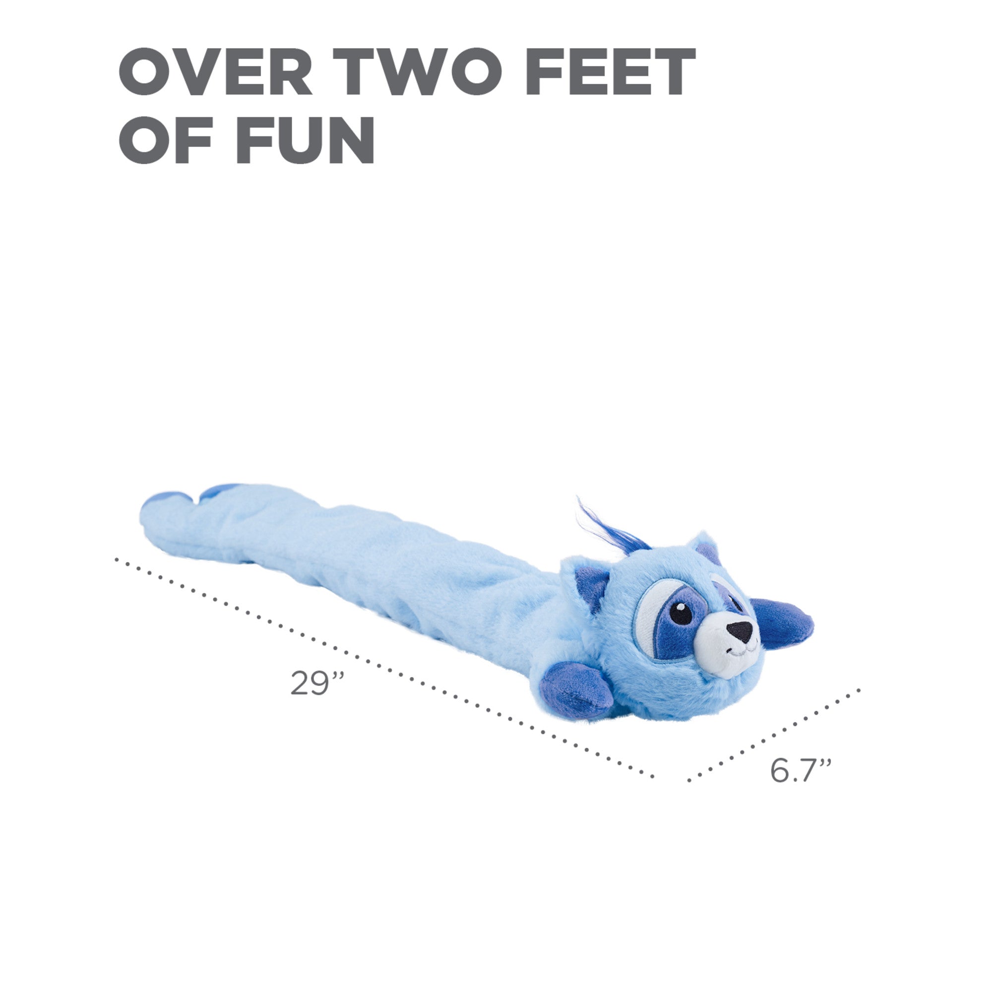 Longidudes are an ultra-long plush dog tug toy that’s as cuddly as it is durable. Soft on the outside for comfortable cuddle sessions but tough on the inside thanks to the unique K9 Tuff Guard technology featuring denier canvas lining, nylon-fused backing, and double-stitched seams. Designed to take tug-of-war games to the next level with 3 large squeakers and crinkle material that dogs find irresistible! Great for interactive and solo play, these toys stand up to shaking, dragging, and tugging. Available in multiple adorable plush characters. Note, Longidudes plush dog toys are not meant to be used as chew toys.