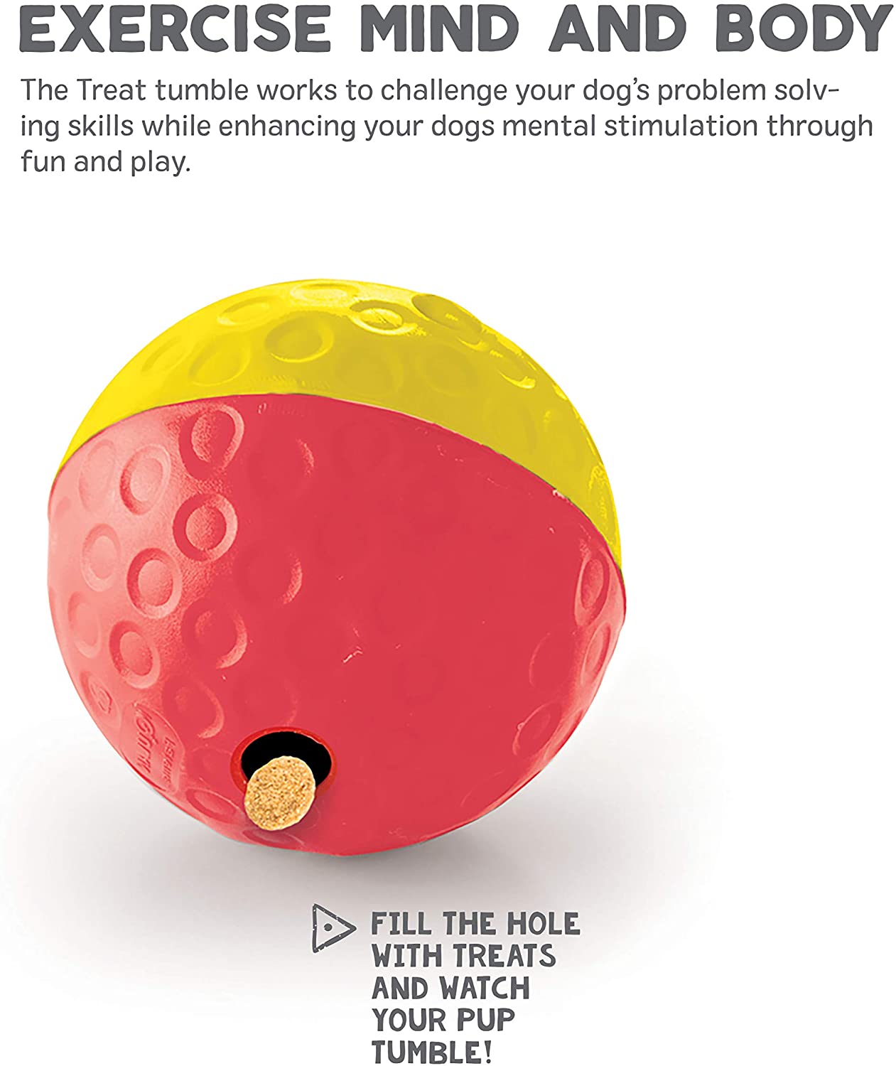 TREAT DISPENSING FUN: The Nina Ottosson Large Treat Tumble is perfect for treating and training your dog. Just fill this treat feeding ball with your dog’s favorite treats and/or kibble and give the ball to your dog to watch them play with the puzzle and figure out how to release the treats.