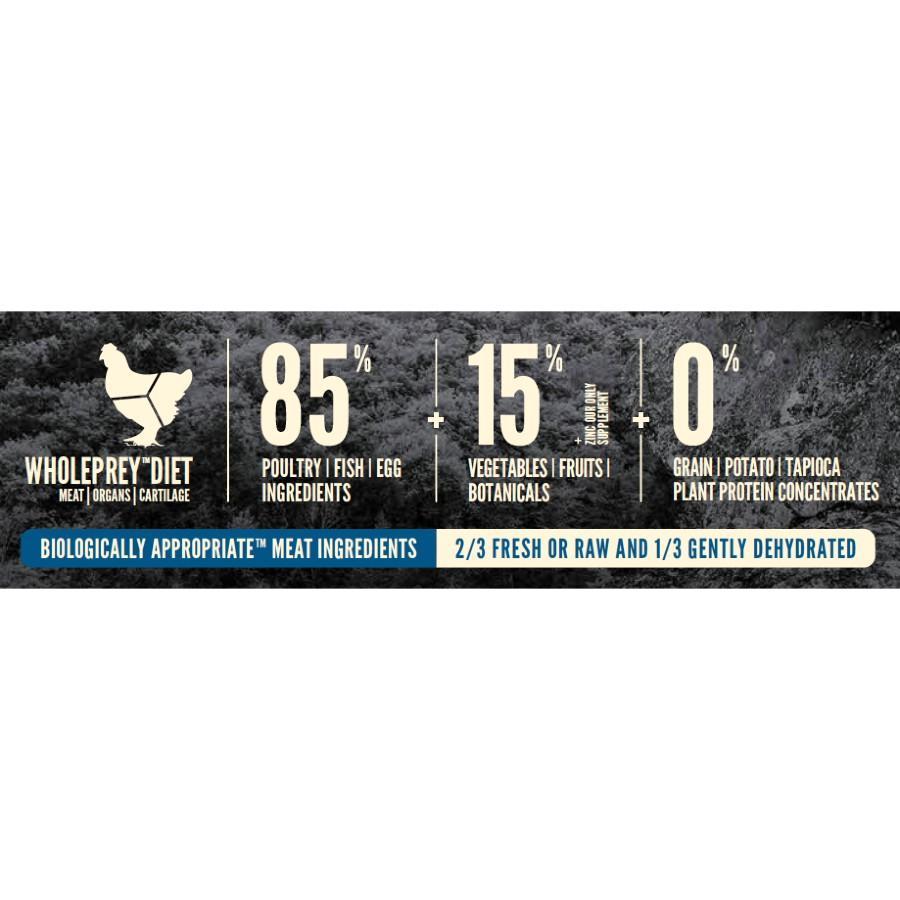 - Nutrient-dense WholePrey™ ratios of fresh meat, organs and cartilage plus whole fish and whole eggs provide a natural source of virtually every nutrient your dog needs.