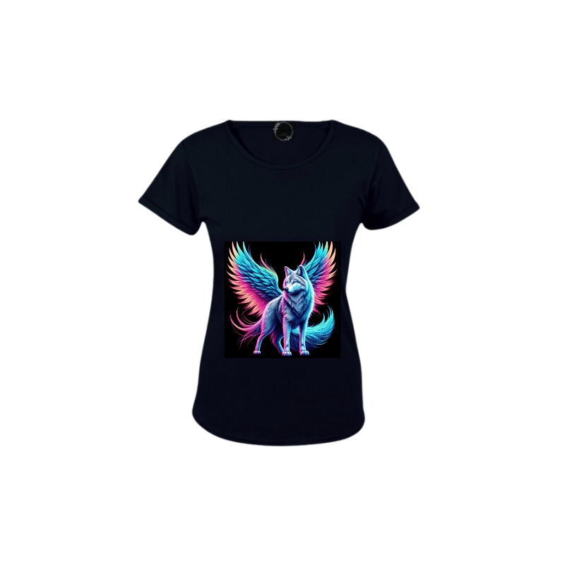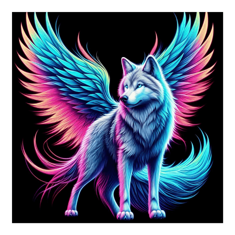 Proud wolf standing with wings
