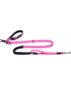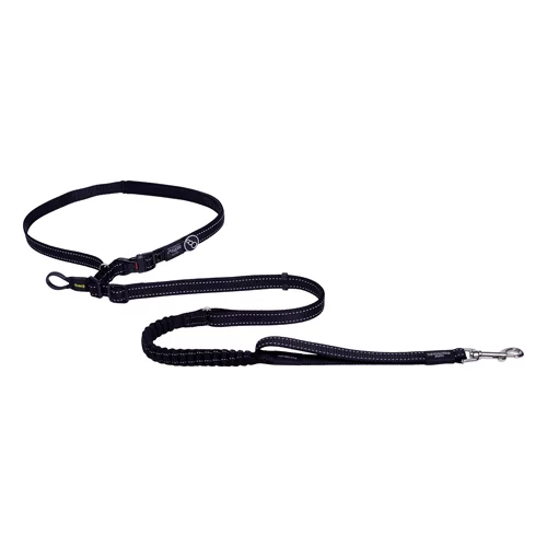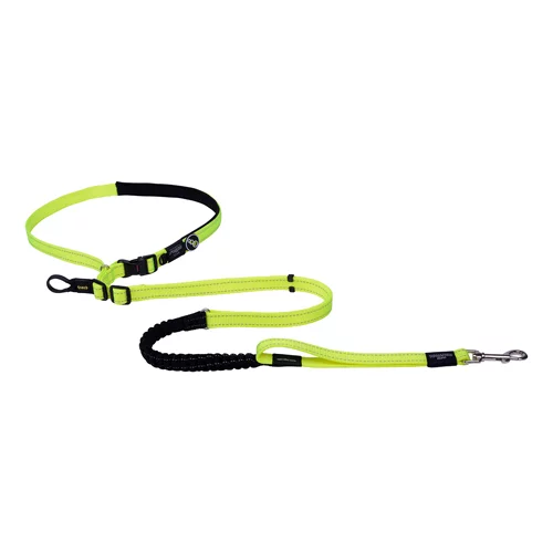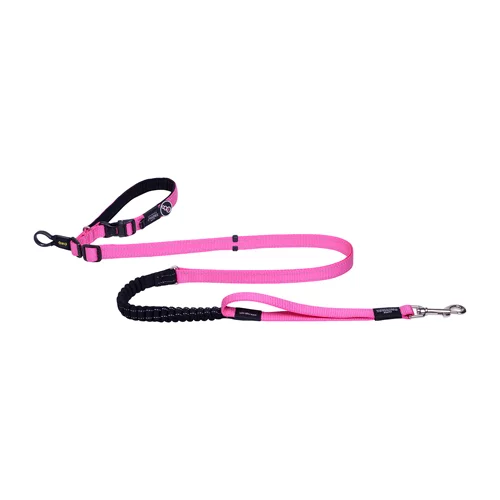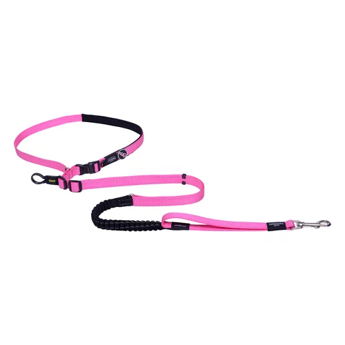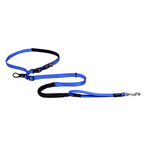 Rogz Handsfree lead designed with dual adjustability, both the waist band and lead length are adjustable to different lengths, offering versatility in use. The shock absorbing webbing reduces strain on both you and your dog while the close control handle improves control in high traffic zones. Reflective stitching for night-time visibility and safety in various conditions.