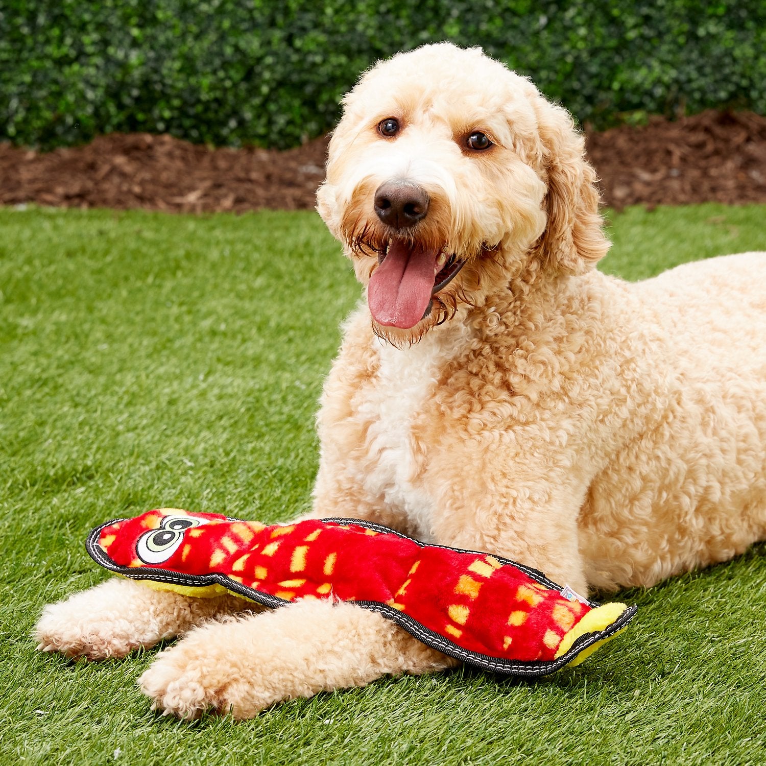 Get the toy that’s designed to play as hard as your dog does with the Outward Hound Tough Seamz Snake Dog Toy. Made with double layered and double stitched seams, this toy makes it extra tough for your dog to tear apart. And with Invincible Squeakers that keep on squeaking even if they get punctured, there’s no such thing as foul play. Plus, no stuffing means no mess if your dog somehow manages to break through, and the adorable snake design is perfect for tossing, snuggling or just having a good ol’ time.