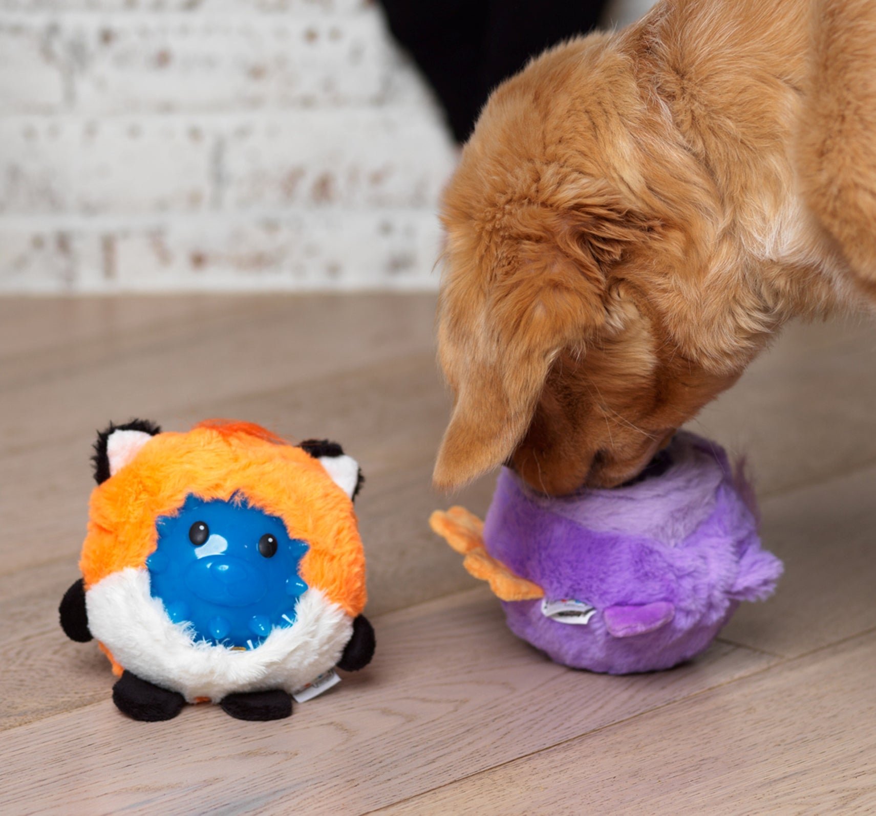 • BOREDOM BUSTER: 2 toys in 1 equals double the fun! Watch as your dog uses problem-solving skills to remove the ball from the outer shell, then toss for a game of fetch.